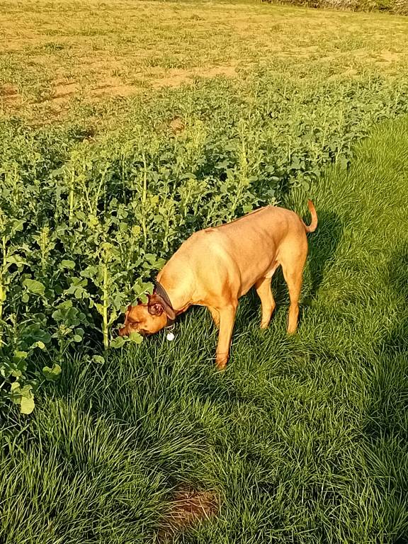 Wenn dann Frauchen heim kommt, wird sich erstmal ausgiebig gefreut und dann geht's wieder raus auf Feld und Wiesen.