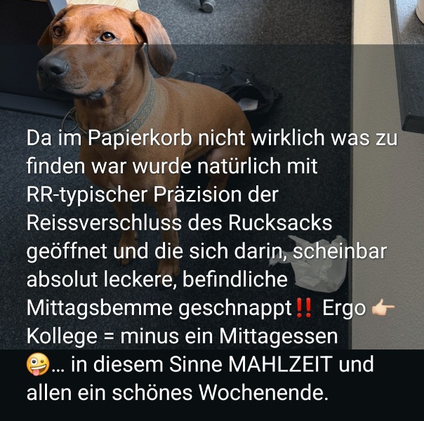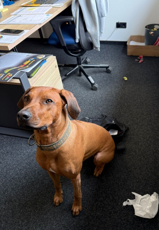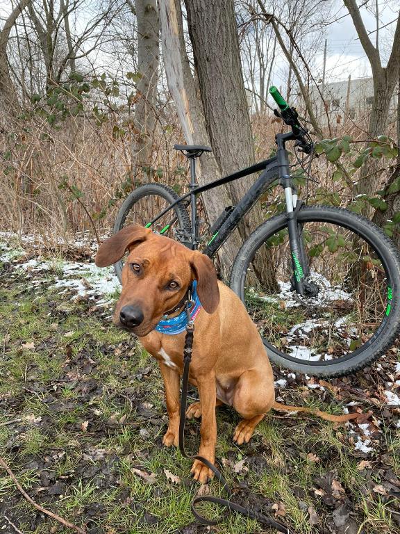 Wir haben heute mal angeradelt. Erst 500m zu Fuß und dann ganz langsam los. Nach 2-3 Aufregungshopsern ist sie dann wunderbar mit dem Befehl „laufen“ rechts am Rad geblieben. Die Runde war für den Anfang nur ca. 3km lang.