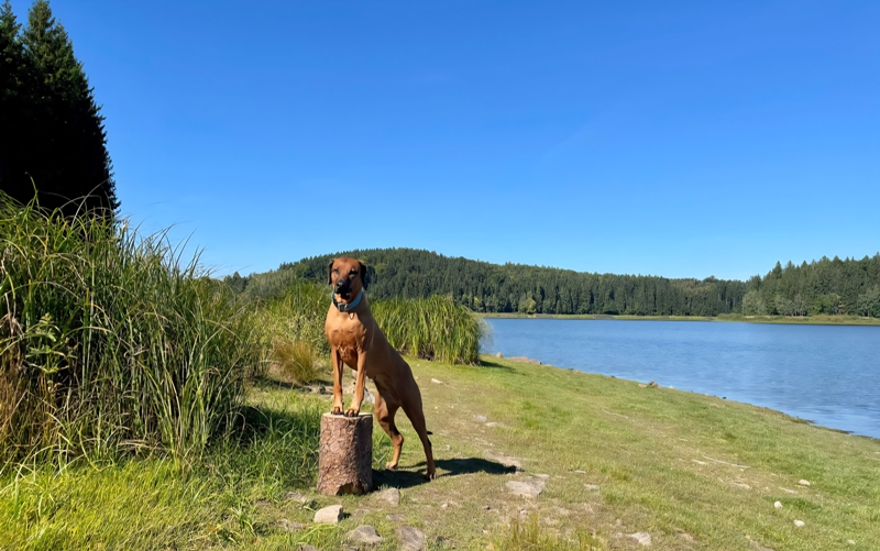 "So, nun möchte auch ich mich kurz vorstellen. Ich bin Erongo Nala und wohnen nun bei meinen Zweibeinern Norbert und Katja in Reifland im Erzgebirge. Hier habe ich einen großen Garten, ringsum viele Felder und Wälder und die Saidenbachtalsperre. Gerade mische ich das Leben meiner Zweibeiner ganz schön auf, aber sie sind froh mich zu haben, nachdem vor fast einem Jahr ihre RR-Hündin Akira über die Regenbogenbrücke gegangen ist. Ich wünschen allen einen schönen Sonntag und jetzt raus in die Sonne. Wir Hundis dürfen ja noch raus."