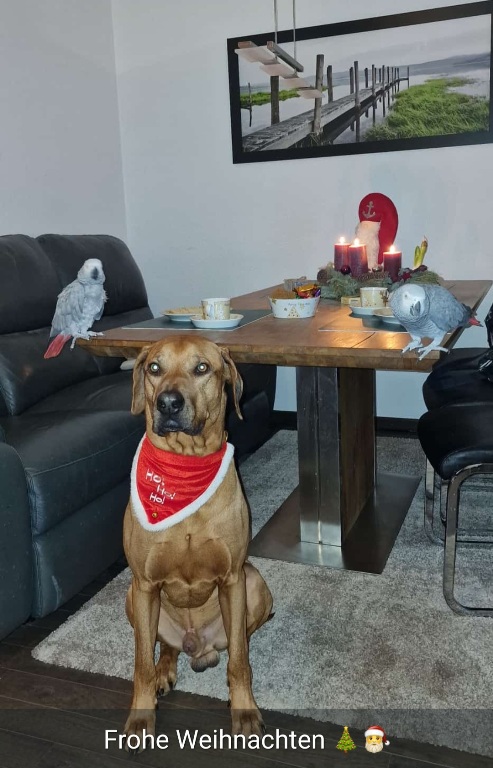 Hallo Mama, hier wieder mal ein paar Fotos von mir und zum ersten Mal auch mit meinen gefiederten Mitbewohnern.