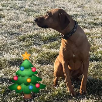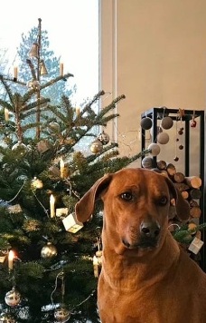 12 Zweibeiner und 3 Ridgebacks - bitte JETZT recht freundlich :-) ! Wenn die Enkel weiter so wachsen, dann muss im nächsten Jahr der Baum höher sein...