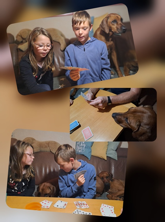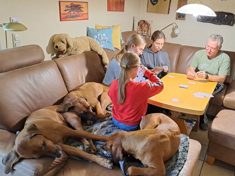 Die Fellnasen leisteten uns Gesellschaft beim Kartenspiel und Samaya passt ganz genau auf, wer schummelt... :-)