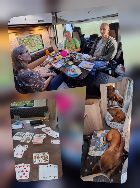 Und dann kommen wir zum gemütlichen Teil! Mehr Platz braucht es für je 4 Zwei- und Vierbeiner nicht. Unsere Fellnasen haben sich eingekuschelt und wir genießen die gemeinsame Zeit.