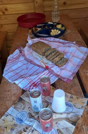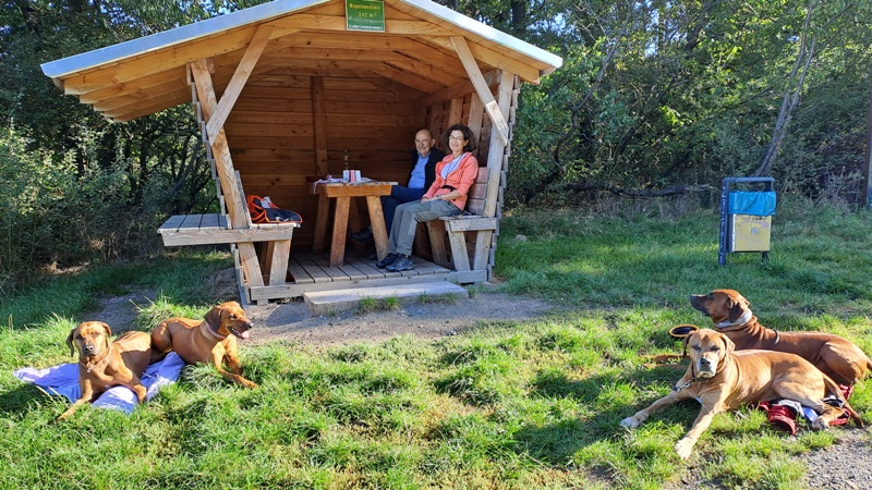 Am Ziel angekommen gönnten sich die Vierbeiner eine kleine Pause und wir uns ein Picknick aus dem Rucksack. Es gab jede Menge zu erzählen und gern hätten wir mehr Zeit miteinander verbracht. |