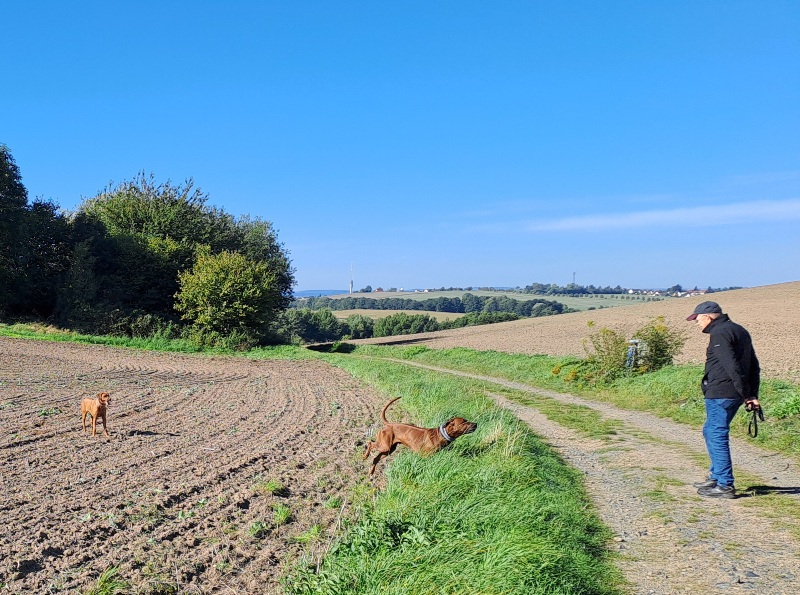 Papa Bashu (G-Wurf) war mit seinem ganzen Rudel am 20. September in Dresden zu Gast und wir nutzten die Gelegenheit, um Ilka sowie Hans Joachim und den Vierbeinern Bashu und Willy das Schönfelder Hochland zu zeigen.