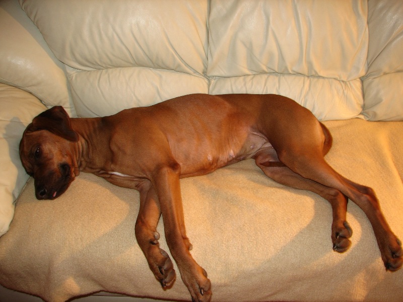 Ich habe es gerade noch auf meine Mwoyo-Decke geschafft und bin auf der Stelle eingeschlafen. Frauchen fragte noch irgendwas von Kaffee und mitkommen, aber da war ich schon fast im Land der Hundeträume. So konnte ich ihr ganz nebenbei auch gleich noch beweisen, dass man mich ruhig mal allein lassen kann. Die Chefin hätte mir mal wieder nicht zugetraut, dass das auch in einer fremden Umgebung, ohne Mama Chiara und Samaya klappt. Tja und so geht mir das ständig, immer werde ich unterschätzt. Als sie wieder da war, musste ich mich allerdings so richtig dolle, nach Mwoyo Art, freuen.