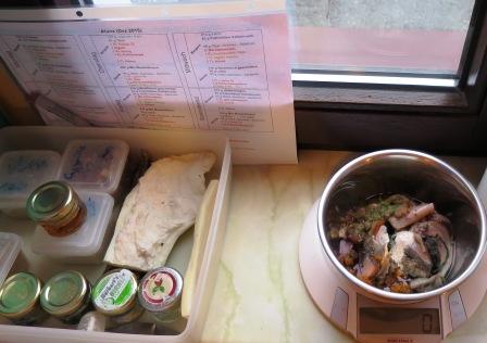 Als es dann besonders gut duftete, kam Bewegung in das Ganze. Alle standen nacheinander auf und liefen immer wieder, sogar mehrmals, in die gleiche Richtung zu den dampfenden Näpfen. Dabei wurde peinlichst darauf geachtet, das wir alle auf unseren Plätzen blieben. Einmal hab ich mich ganz vorsichtig hinterher geschlichen und... wurde erwischt und zurück geschickt!