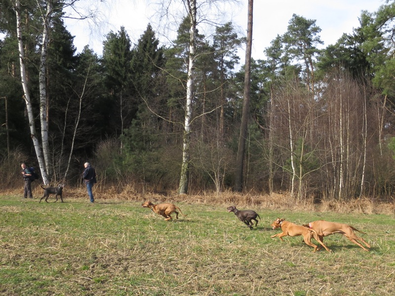 Der zum Teil noch gefrorene Boden verlangte von uns einiges an Aufmerksamkeit und auch das ordentliche Laufen an der Leine, im unwegsamen Gelände, war eine gute Übungsmöglichkeit für die Hunde.