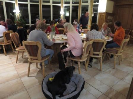 Am Abend wartete dann die nächste Herausforderung auf mich. Alle Zwei- und Vierbeiner trafen sich zum gemeinsamen Abendbrot. Na ja, gemeinsam trifft es wohl nicht ganz. Das tolle Buffet, was so prima duftete, war nur für die Chefs gedacht. OK, mein Abendessen hatte ich ja zuvor auf dem Zimmer bekommen.