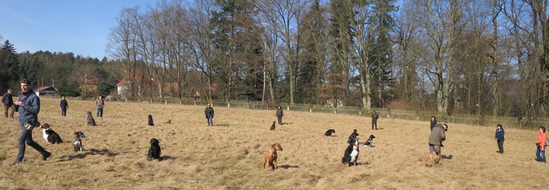 Da bin ich wieder und das sind meine vierbeinigen Kumpels. Wenn bei unseren Rudelchefs nicht anderes im Kalender steht, treffen wir uns hier jeden Sonnabend. 14 Uhr ist immer erst mal Spielen angesagt.