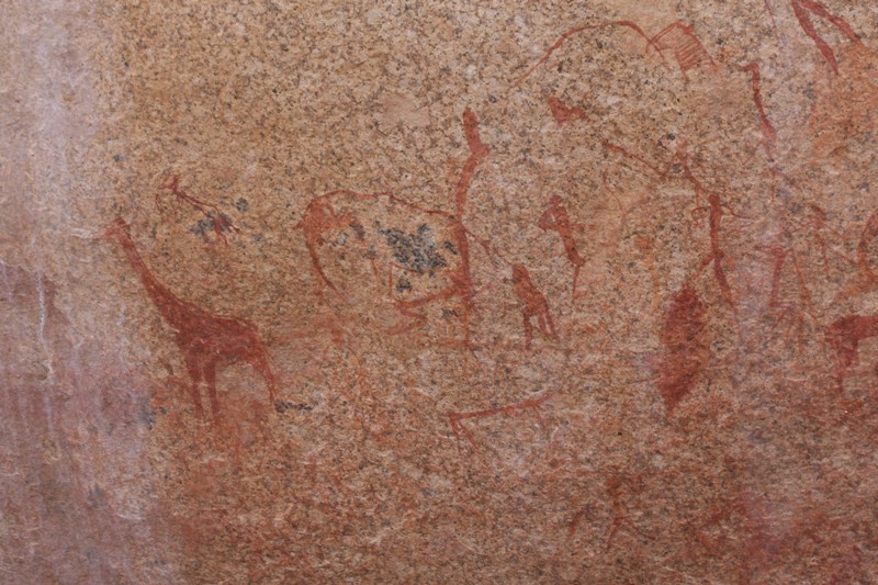 Jetzt sollte es eigentlich noch schnell zu den Felszeichnungen gehen. Aber schnell ging schon mal gar nicht. Diese Giraffen kreuzten unseren Weg und damit unserem Plan.