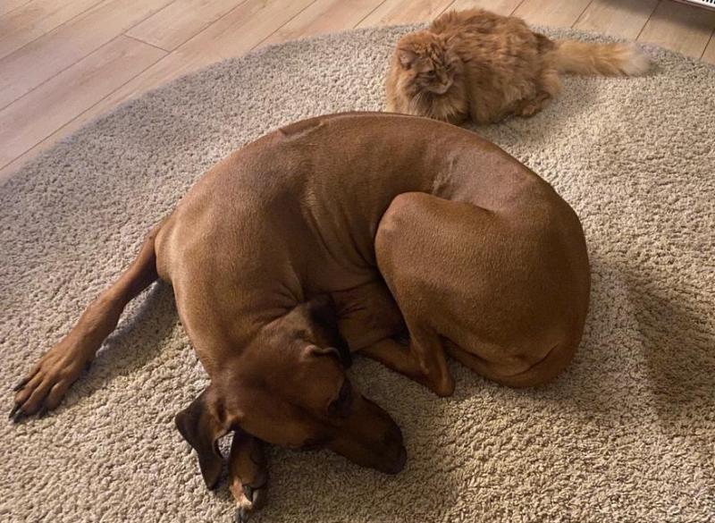 Und so sieht bei diesen Temperaturen ein "Ridgeback-Platz" aus. Liegen, den Bauch einziehen und ja nicht Luft holen...