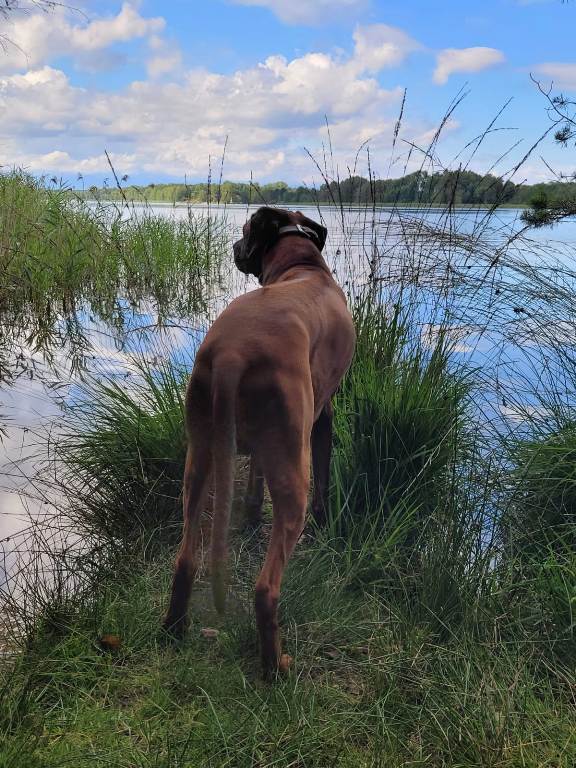 Bei unseren Spaziergängen behält Chuma gern alles im Auge, wie am Halbendorfer See.