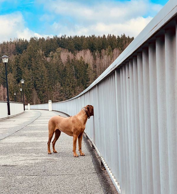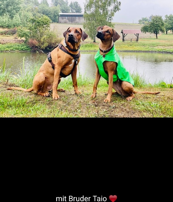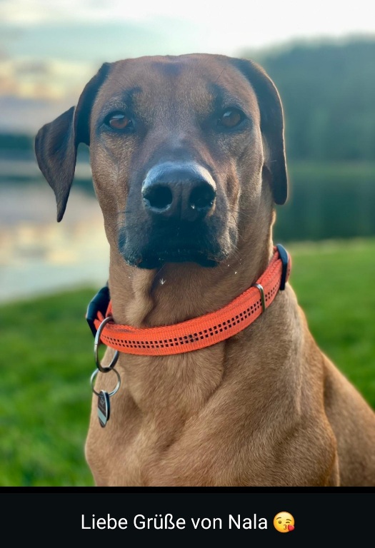"So, nun möchte auch ich mich kurz vorstellen. Ich bin Erongo Nala und wohnen nun bei meinen Zweibeinern Norbert und Katja in Reifland im Erzgebirge. Hier habe ich einen großen Garten, ringsum viele Felder und Wälder und die Saidenbachtalsperre. Gerade mische ich das Leben meiner Zweibeiner ganz schön auf, aber sie sind froh mich zu haben, nachdem vor fast einem Jahr ihre RR-Hündin Akira über die Regenbogenbrücke gegangen ist. Ich wünschen allen einen schönen Sonntag und jetzt raus in die Sonne. Wir Hundis dürfen ja noch raus."