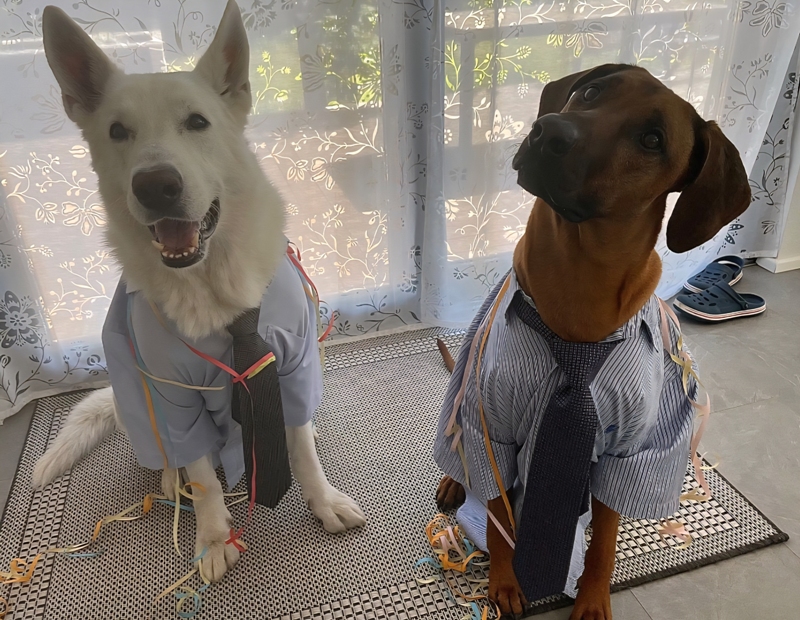 Nun sind sie in der Probezeit von 6 Monaten und legen danach weitere Prüfungen ab. Wenn sie erfolgreich sind, schließt Elmo damit die Ausbildung ab und kann als Rettungshund eingesetzt werden.