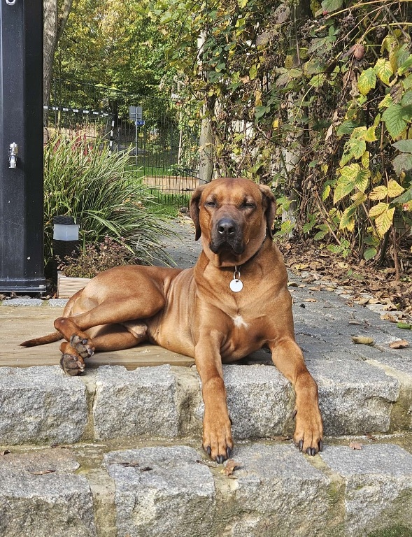 Während die Zweibeiner fleißig sind, chillt Tau in der Sonne.