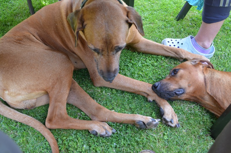 hatten wir lieben Besuch von Gabi und Reno mit ihrem Rüden Rani. Es lies sich herrlich plaudern und trotz Schmuddelwetters gab es natürlich auch einen Spaziergang. Aluna zeigte ihr Revier und die beiden Ridgies tobten, trotz recht "schweren Geläufs", ausgelassen über die aufgeweichten Felder. Nach dem anschließenden Schonwaschgang waren sie schätzungsweise 1000 g leichter...