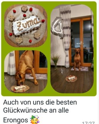 Wir gratulieren den Erongos ganz herzlich. Bleibt vor allem gesund und lasst euch, nicht nur heute, so richtig verwöhnen.