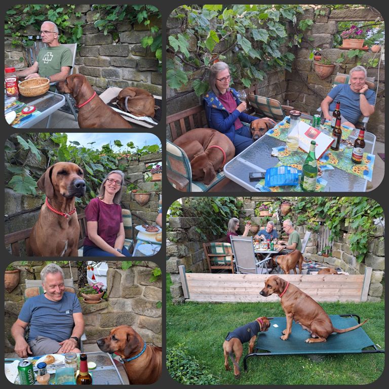 Es gab viele Treffen mit unserer Nachzucht und ihren Zweibeinern. Besondere Höhepunkte erlebten wir beim gemeinsamen Campen, inklusive Überraschungsbesuchern und Ausstellungen. Diese Wochenenden gehörten mit zu den Schönsten des Jahres. Die persönlichen Einladungen zu unseren Nachzuchten mit entspannten Spaziergängen und gemütlichen Stunden, sowie die Wiedersehen bei uns zu Hause, bleiben in guter Erinnerung.